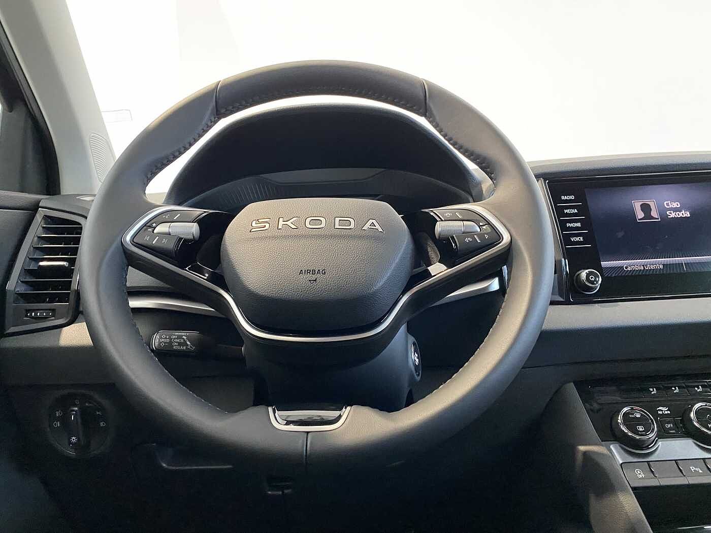 - Volante multifunzione a 2 razze in pelle con inserti cromati e comandi del navigatore e del telefono